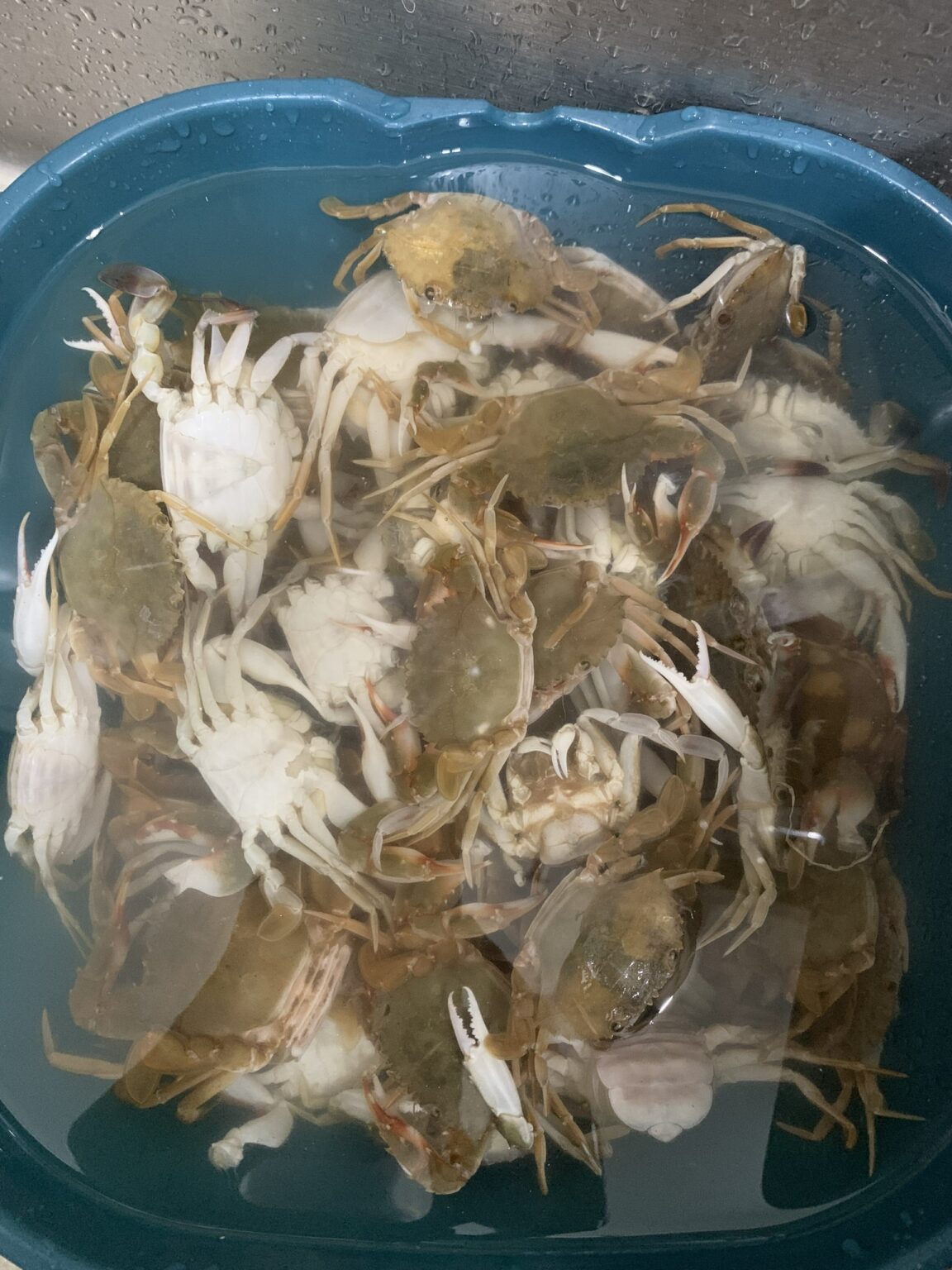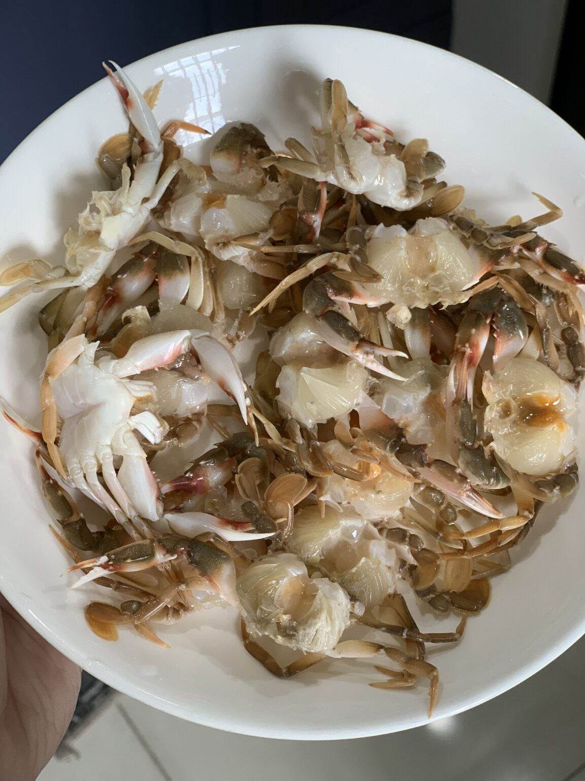 Ghẹ sữa sau khi mua về, bạn tiến hành bỏ đi phần mai và yếm, rồi mang ngâm với nước muối loãng khoảng 2-3 phút rồi rửa lại với nước sạch. Bạn có thể rửa đi rửa lại bằng nước sạch.